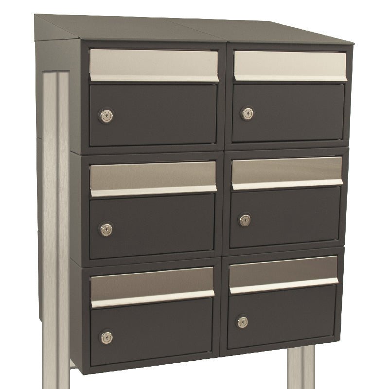 Hauptmerkmale des Briefkastenkastens Brickset 2-breit, 3-hoch mit Dach und Stativ Anthrazit 201x67x38 cm (HxBxT):