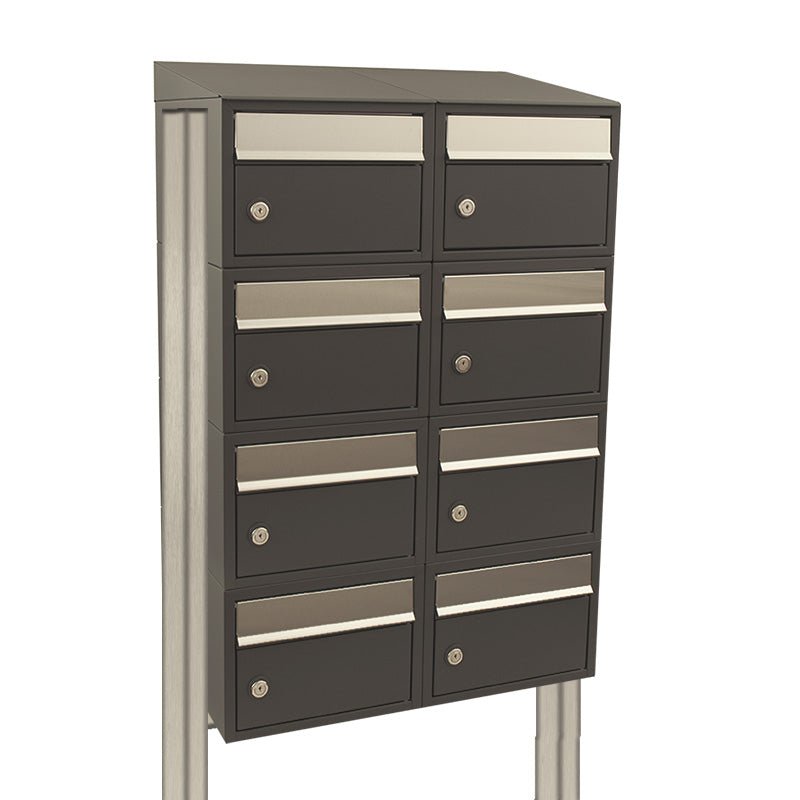 Hauptmerkmale des Briefkastenkastens Brickset 2-breit, 4-hoch mit Dach und Stativ Anthrazit 201x67x38 cm (HxBxT):