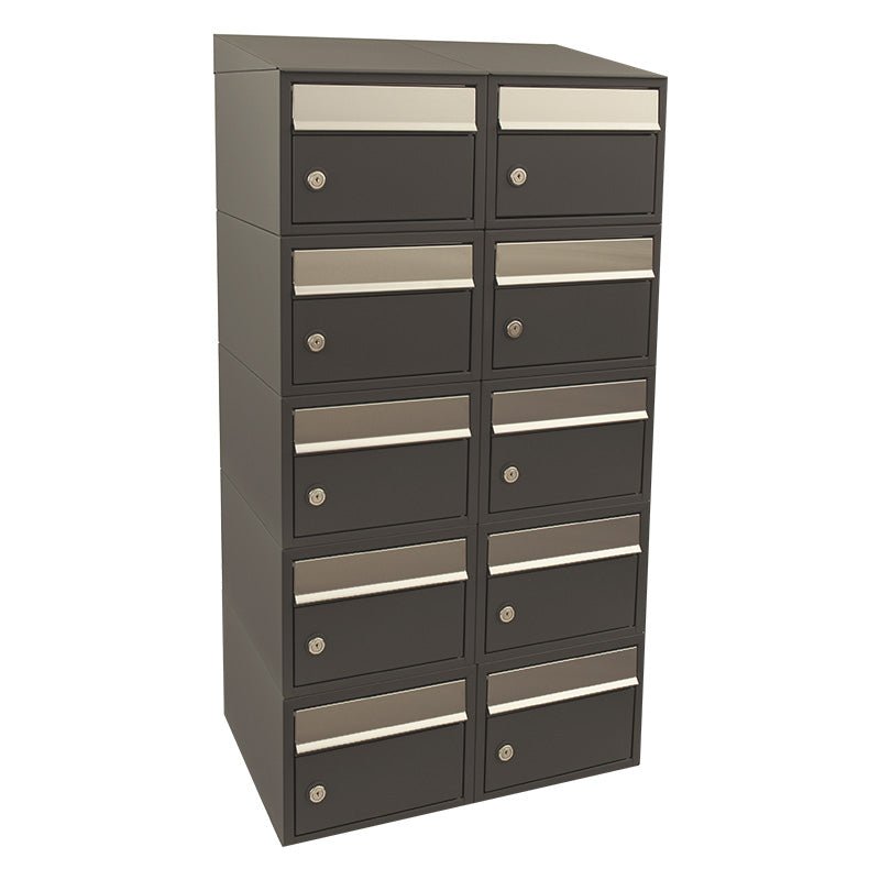 Hauptmerkmale des Briefkastenkastens Brickset 2-breit, 5-hoch mit Dach Anthrazit 113,5x59x38 cm (HxBxT):