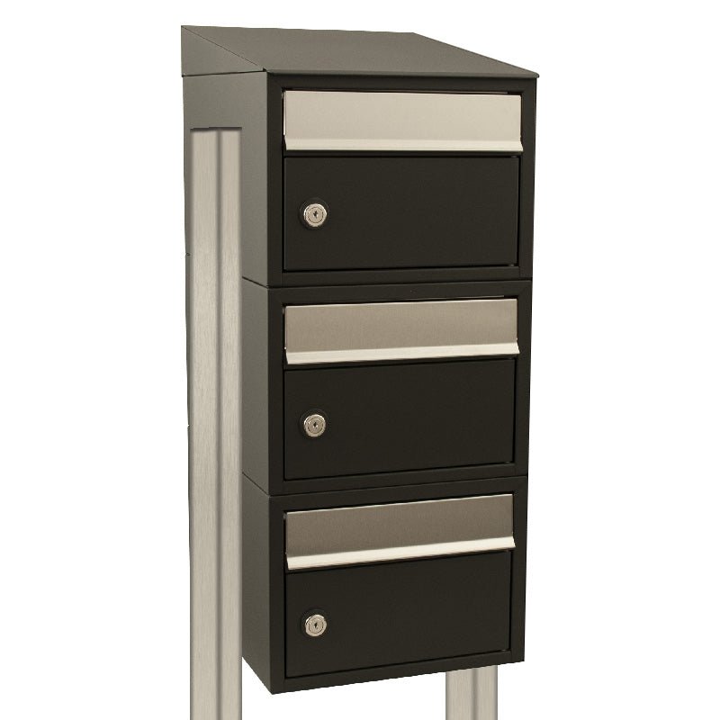Machen Sie Ihre Postzustellung einfacher und zuverlässiger mit dem Briefkastenblock Brickset 3-hoch mit Dach und Stativ Schwarz 201x37,5x38 cm (HxBxT) – die ideale Lösung für jede Umgebung.