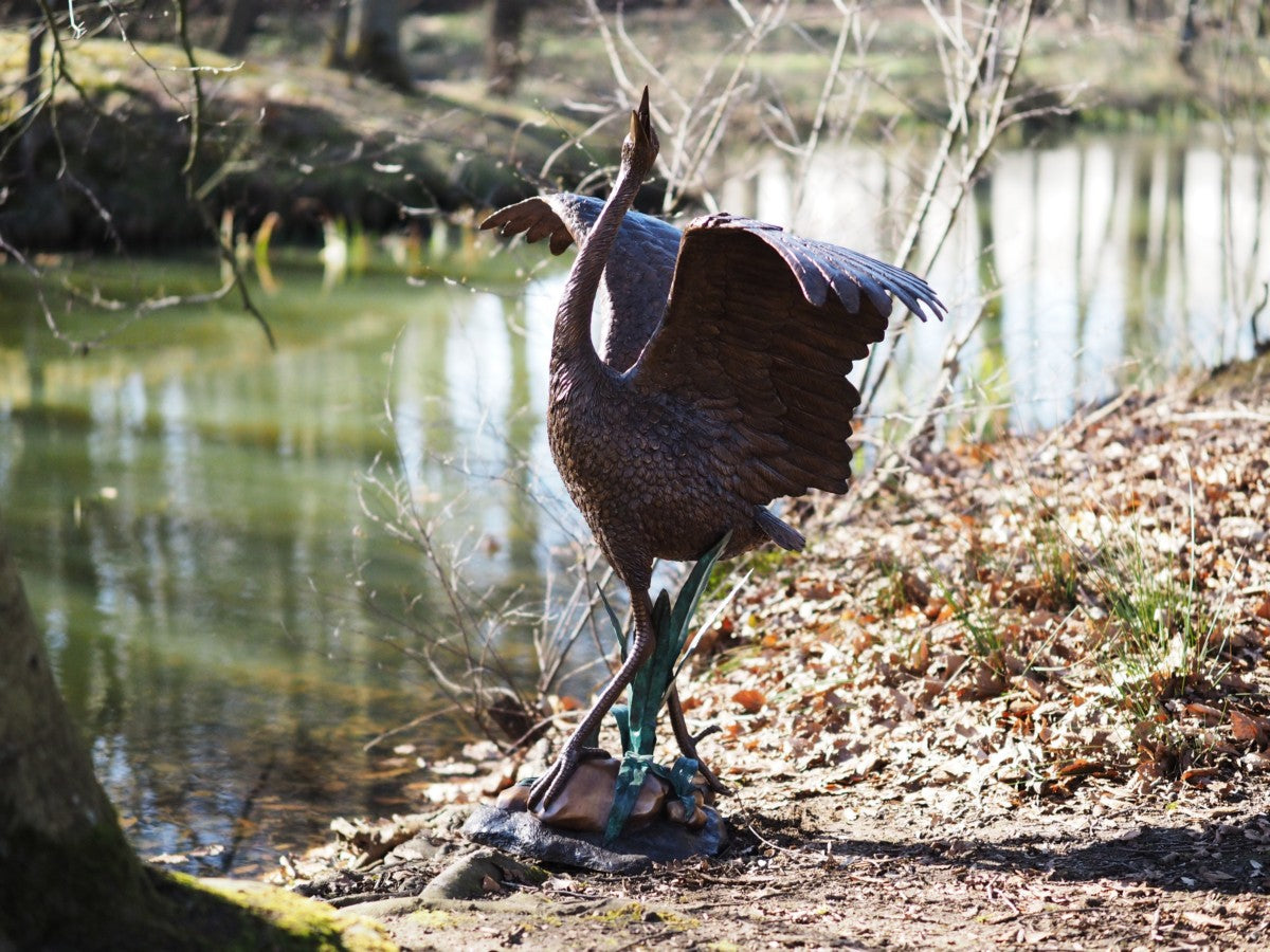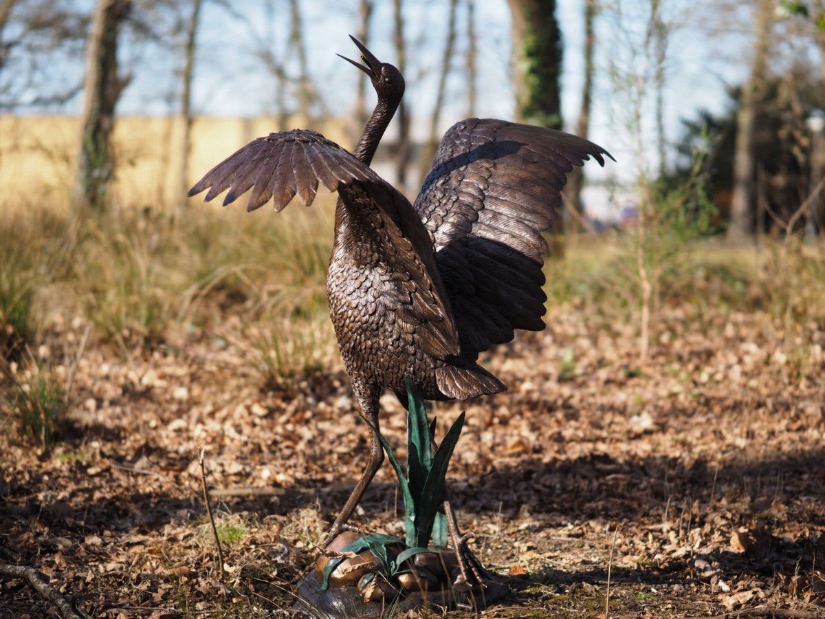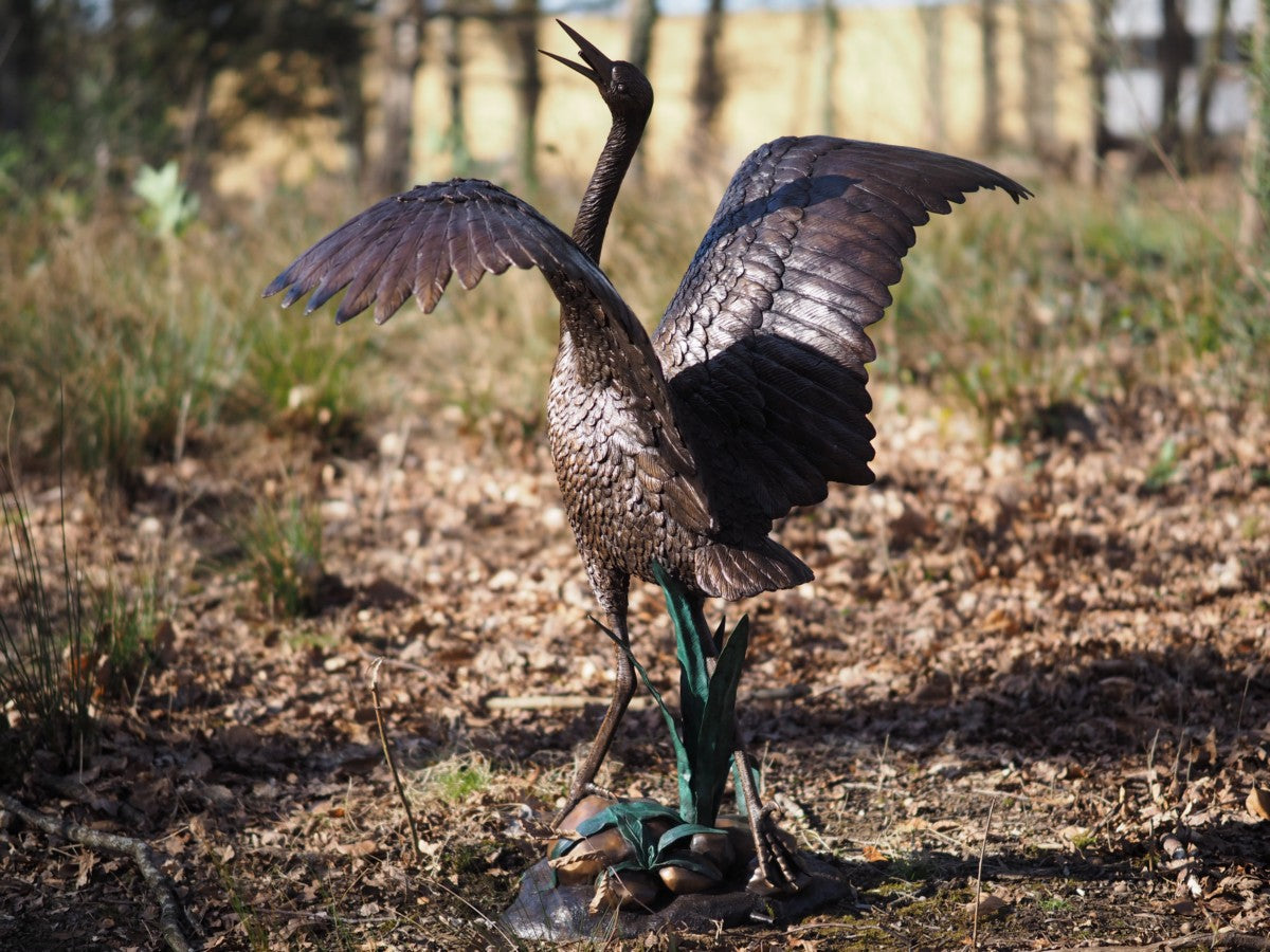 Mit der Bronzestatue „Reiher (Brunnen)“ erwerben Sie nicht nur eine wunderschöne Ergänzung für Ihre Sammlung, sondern ein Stück Ewigkeit, das über Generationen hinweg erstrahlen wird.