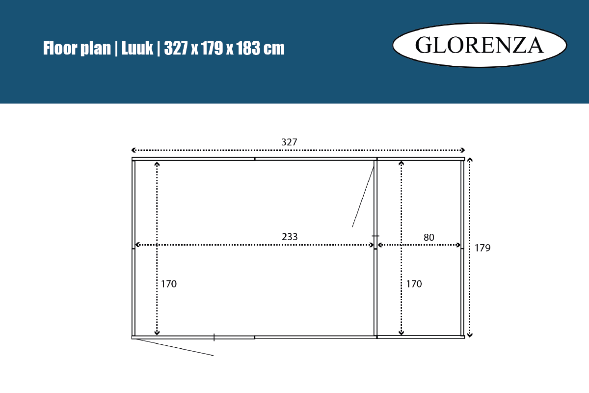 - Geräumige Maße von 327 x 179 x 183 cm für optimale Bewegungsfreiheit.