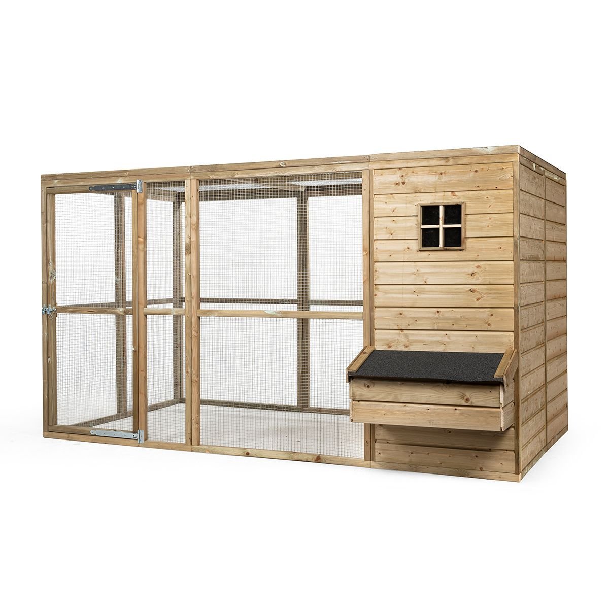 Das durchdachte Design des Tiergeheges bietet nicht nur Komfort für Ihre Tiere, sondern auch eine einfache Handhabung für Sie. Dank des festen Legenests müssen Sie sich keine Sorgen um das Auffinden von Eiern machen. Der Durchgang im Nachtkäfig erleichtert den Tieren den Wechsel zwischen Innen- und Außenbereich. Darüber hinaus sorgen die verzinkten Scharniere und Schlösser dafür, dass auch bei häufigem Gebrauch alles fest verschlossen bleibt.