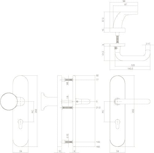 Intersteel Sicherheitsbeschlag SKG*** Profilzylinder Loch 72 mm oval Messing getrommelt