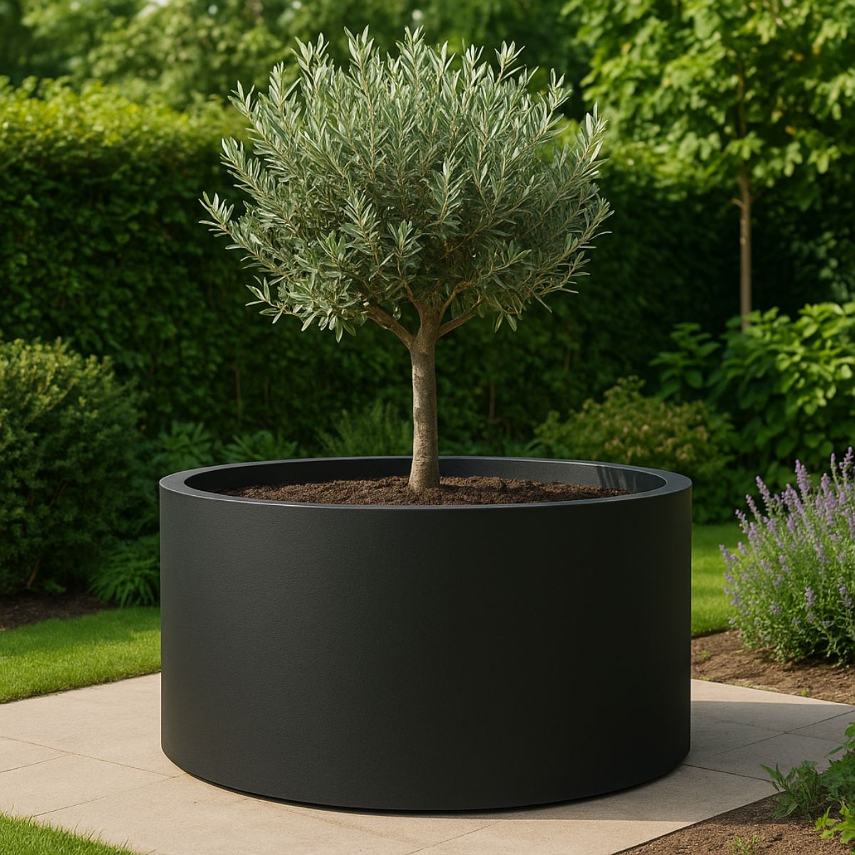 Bestellen Sie noch heute Ihren runden Polyester-Pflanzkübel Ø 150x60 cm in Tiefschwarz (RAL 9005)!