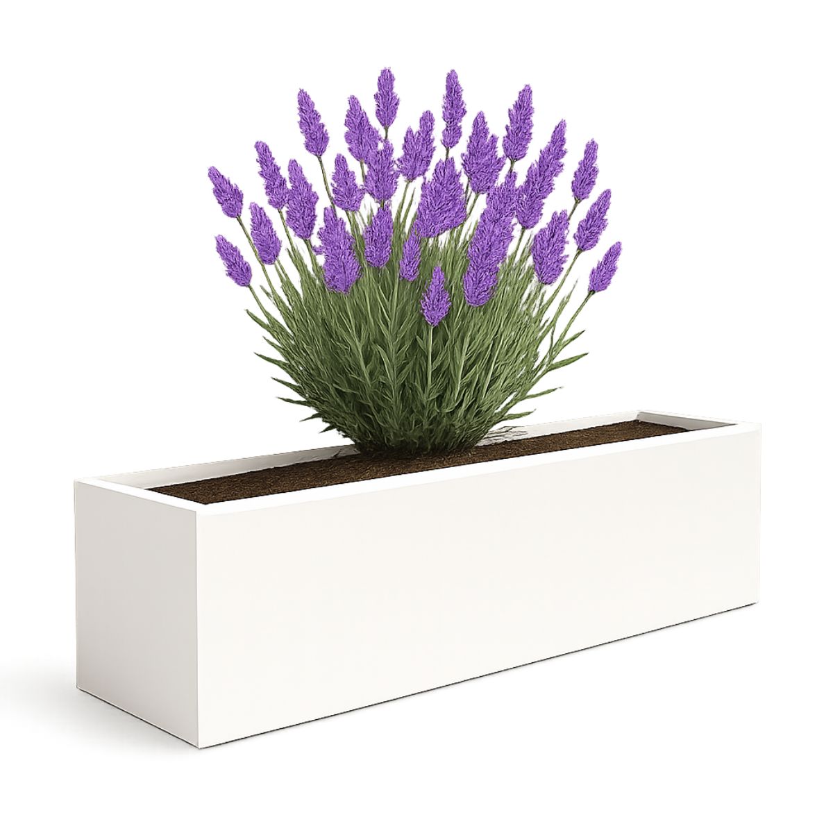 Order your 208x30x20 cm polyester planter in Pure White (RAL 9010) today!