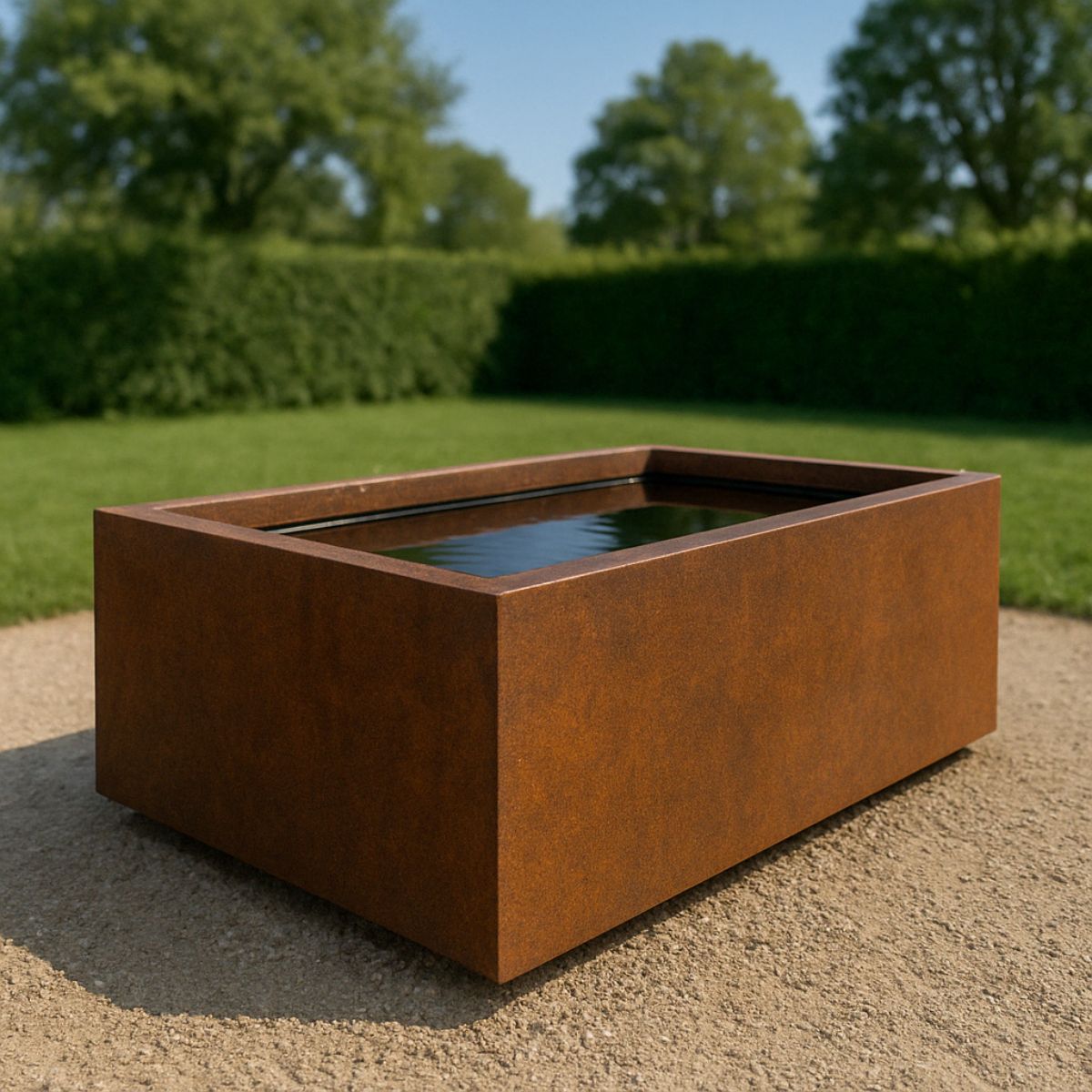 The pond is made of high-quality Corten steel, also known as weathering steel. This material is known for its long lifespan and distinctive appearance. A natural orange-brown rust layer develops under the influence of the outside air, protecting the steel from further corrosion. The longer the pond is left outdoors, the more stable and durable the material becomes.