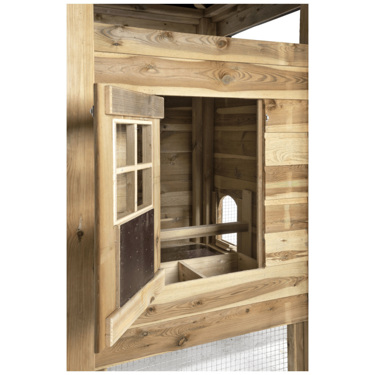 Douglas wood is one of the strongest European softwood species and offers natural durability. The impregnated wood is vacuum treated, making it resistant to water, mold and wood rot. Enjoy your animal shelter for years to come!