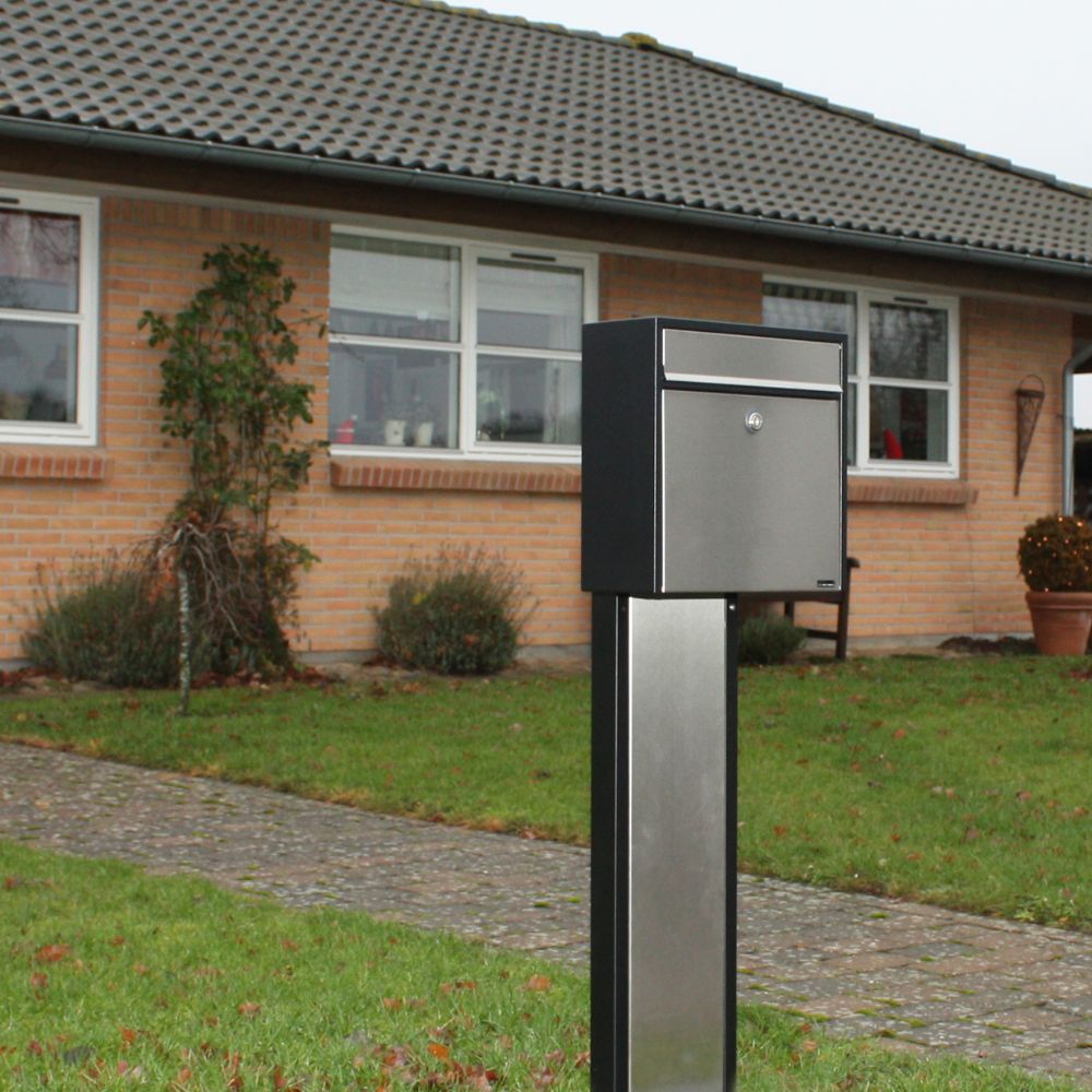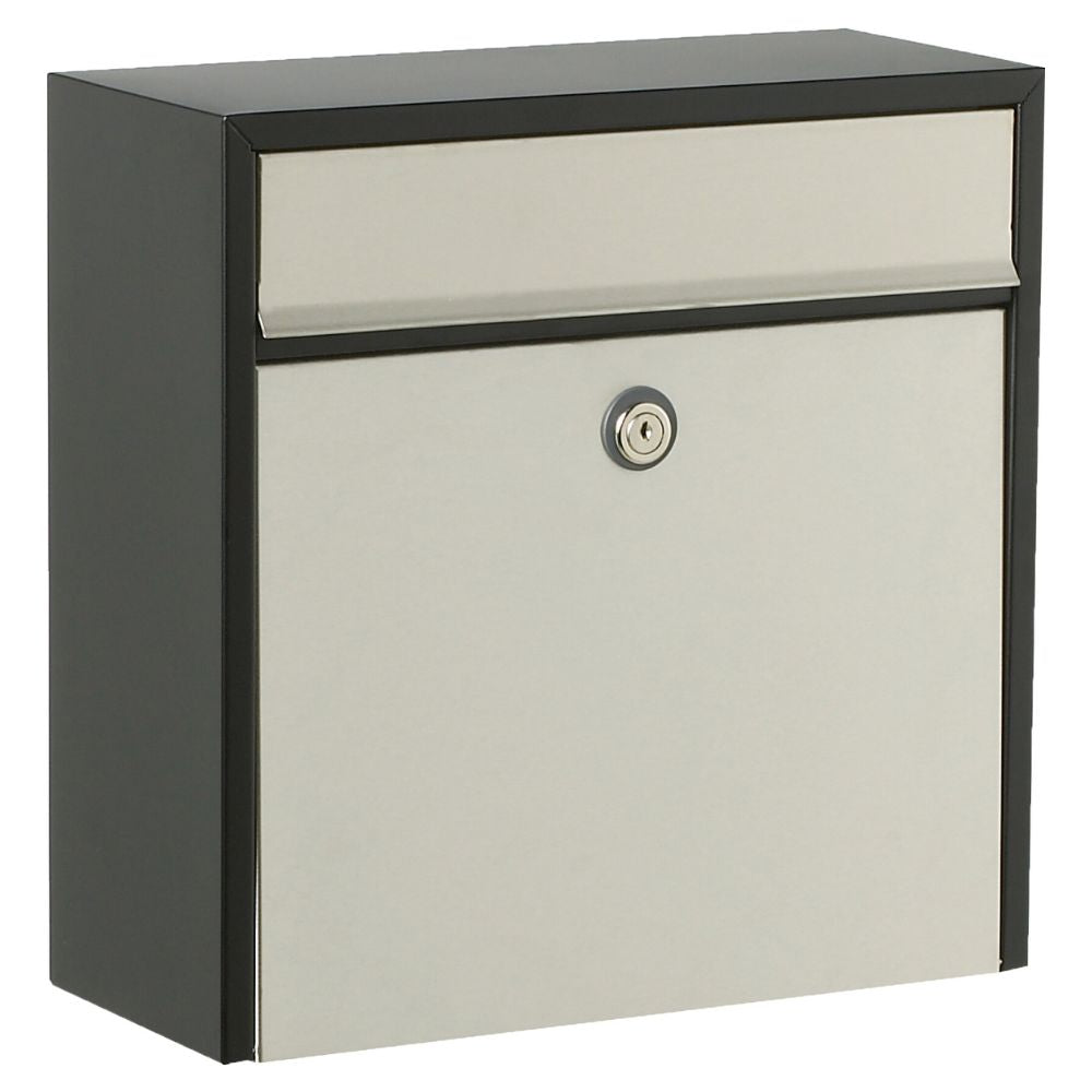 Buzón Allux 250 Negro con frontal de acero inoxidable