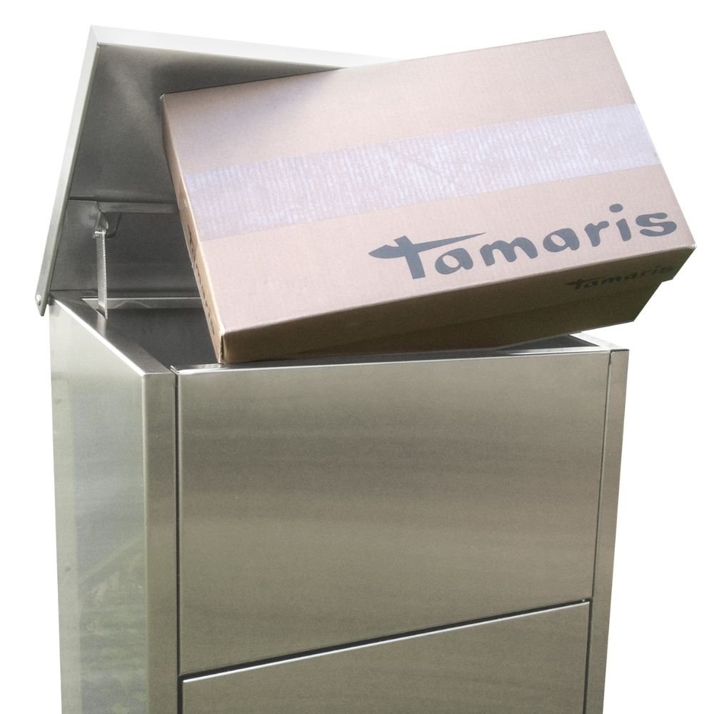 El buzón para paquetes de acero inoxidable Allux 600 ofrece no solo un diseño elegante y contemporáneo que complementa a la perfección cualquier hogar, sino también ventajas prácticas que le simplifican la vida. Este buzón para paquetes está fabricado en acero inoxidable, lo que significa que resiste las condiciones climáticas más adversas. Tanto si recibe pedidos online a diario como si solo espera algún paquete ocasional, sus generosas dimensiones (Alto 105 x Ancho 38 x Fondo 23 cm) garantizan el almacenamiento seguro de sus cartas y paquetes.