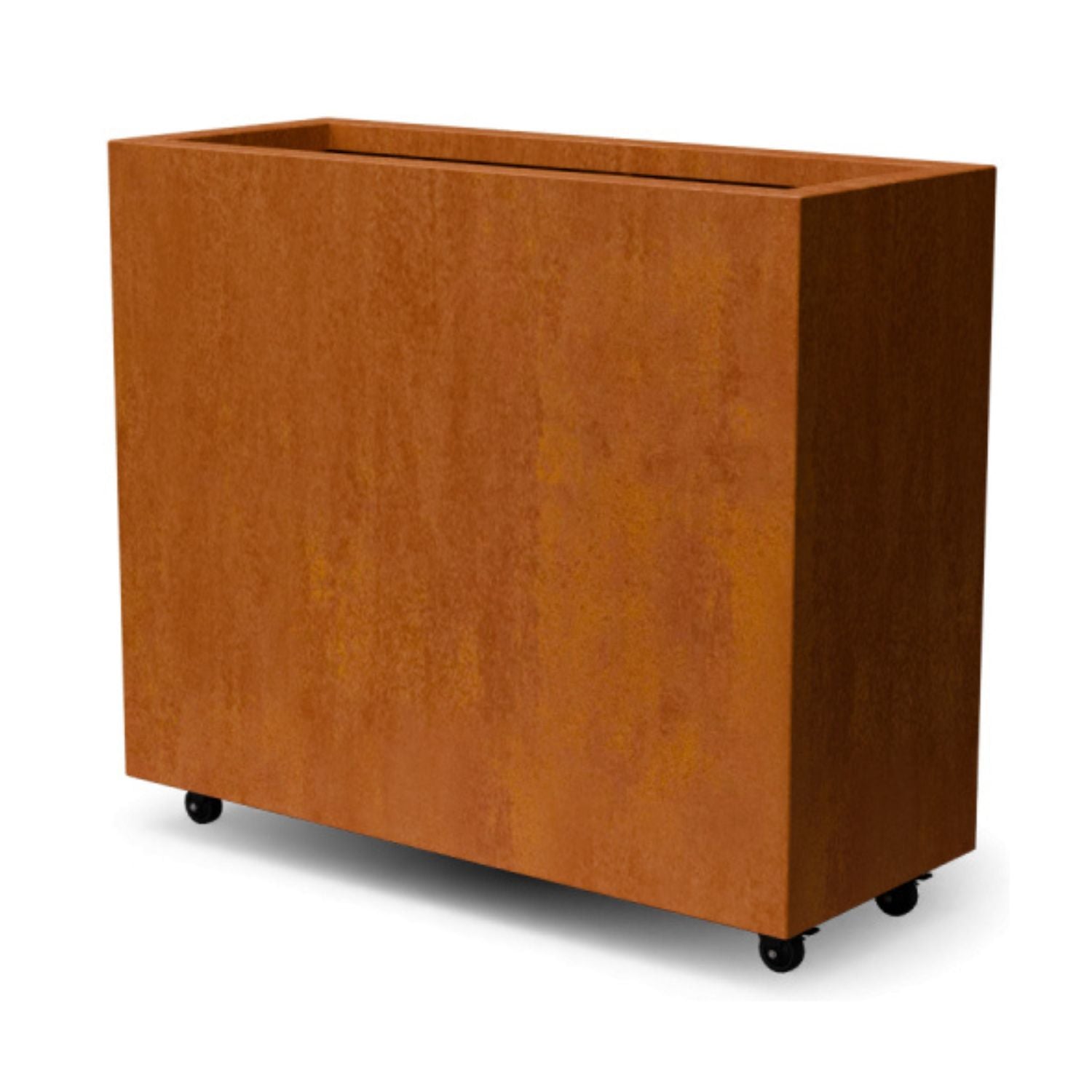 Langwerpige cortenstalen plantenbak met wielen 100x40x80 cm