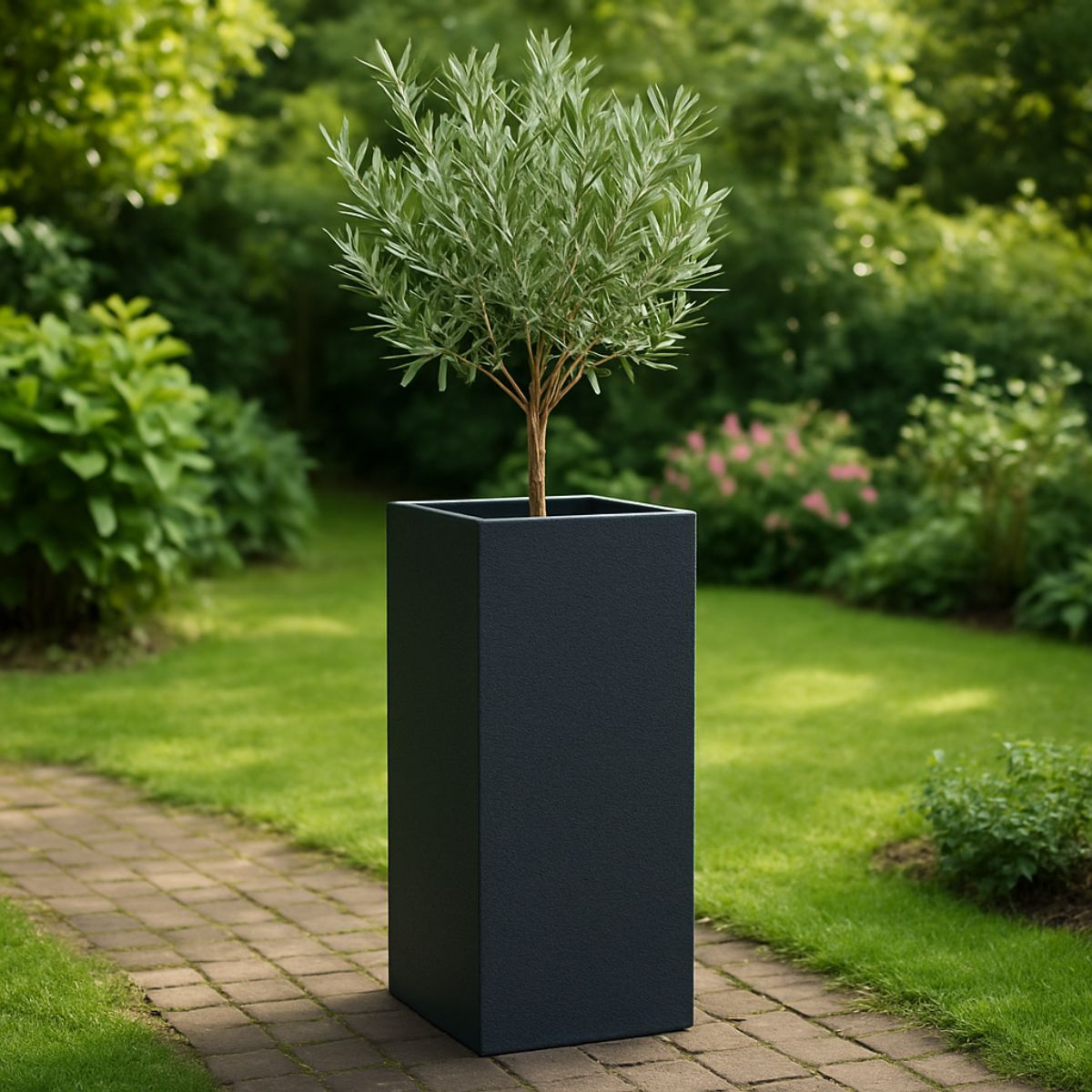 ¿Quieres modernizar tu espacio exterior con un diseño resistente y atractivo? Pide ahora la jardinera de poliéster 40x40x120 cm en gris negro (RAL 7021) y aprovecha sus múltiples beneficios. Ya sea que prefieras un color estándar o un tono personalizado, lograrás un entorno elegante que refleje tu estilo único.