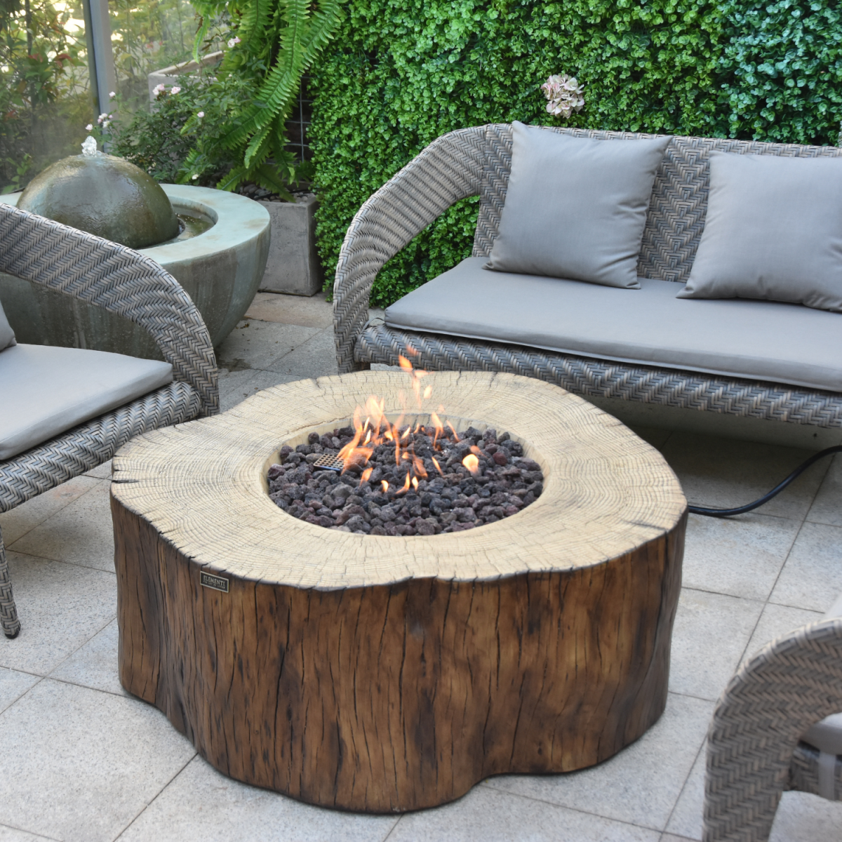 - De Elementi Manchester ronde vuurtafel rood hout is vorstbestendig en kan het hele jaar door buiten blijven staan