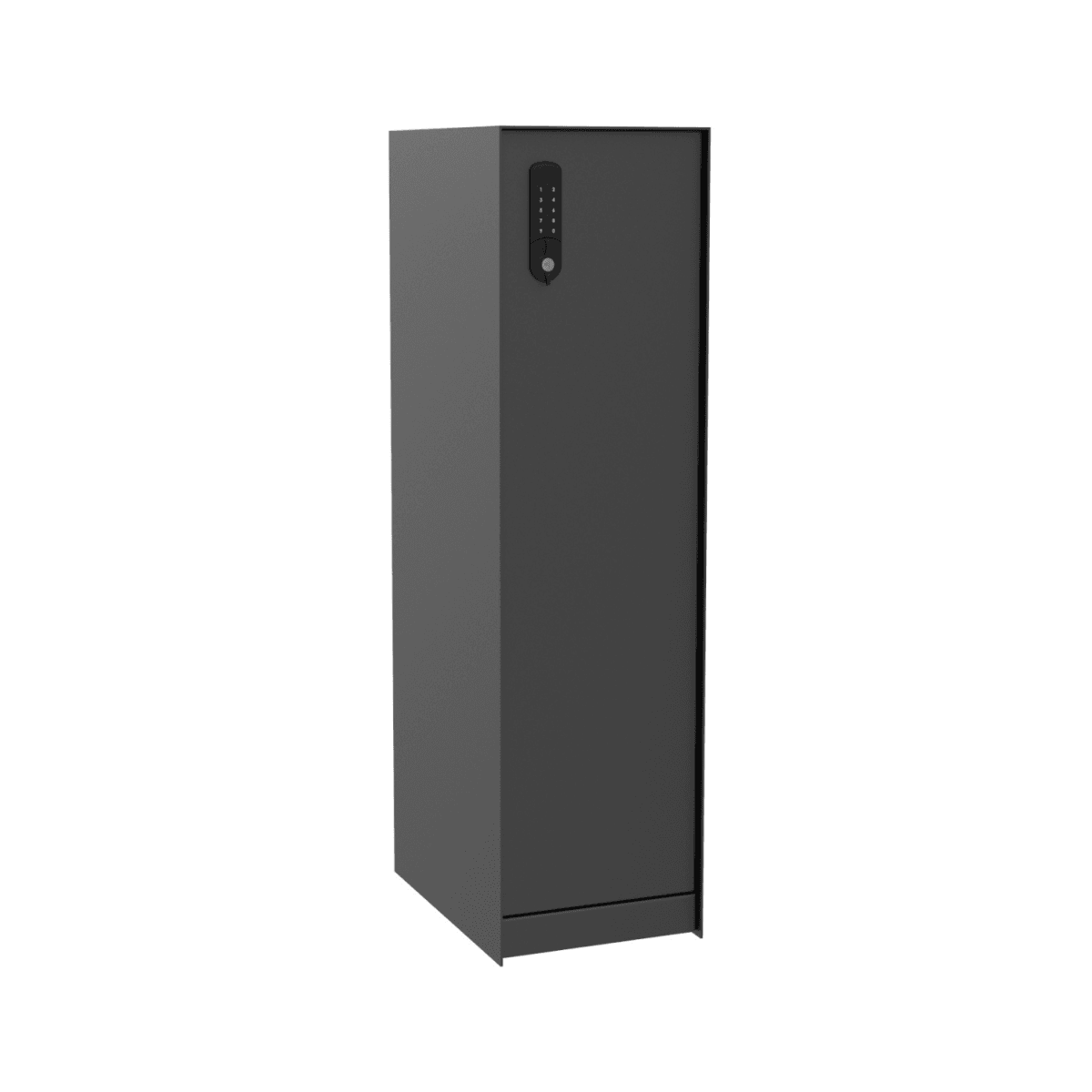 Está fabricado en aluminio inoxidable de alta calidad con recubrimiento en polvo gris pérgola mate RAL 9008. Incluye base extraíble, ranura independiente para correspondencia, cerradura digital con código y cerradura tradicional con llave.