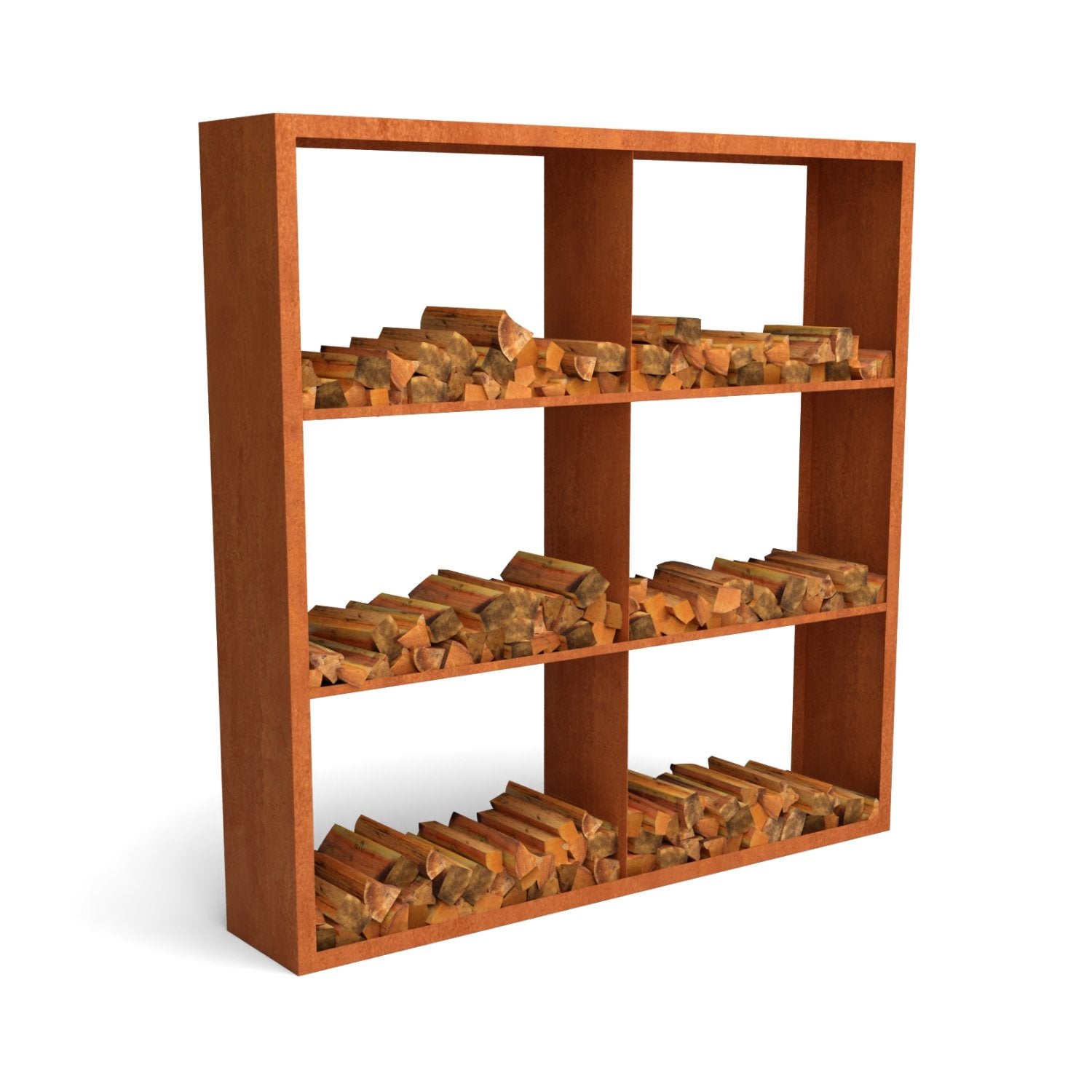 Ce rangement à bois en acier Corten 200 x 38,5 x 200 cm avec 6 compartiments est conçu avec une couche protectrice qui, lorsqu'elle est exposée à l'air libre, développe une belle couleur rouille naturelle. Cette couleur, combinée au bois, crée un ensemble visuellement attrayant qui s'intègre parfaitement dans les jardins classiques et modernes.