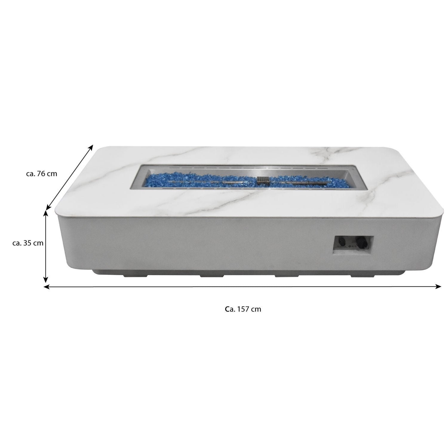 La table à feu Athen est une table moderne et luxueuse qui apportera ambiance et confort à votre terrasse ou véranda. La table à feu est en béton fibré et a un aspect marbre. Le foyer fonctionne au gaz et peut être connecté à des bouteilles de gaz universelles de 5 kg et 11 kg. Le foyer dispose également d'un démarreur électrique monté et d'un régulateur précis de 50 mbar sur le côté.