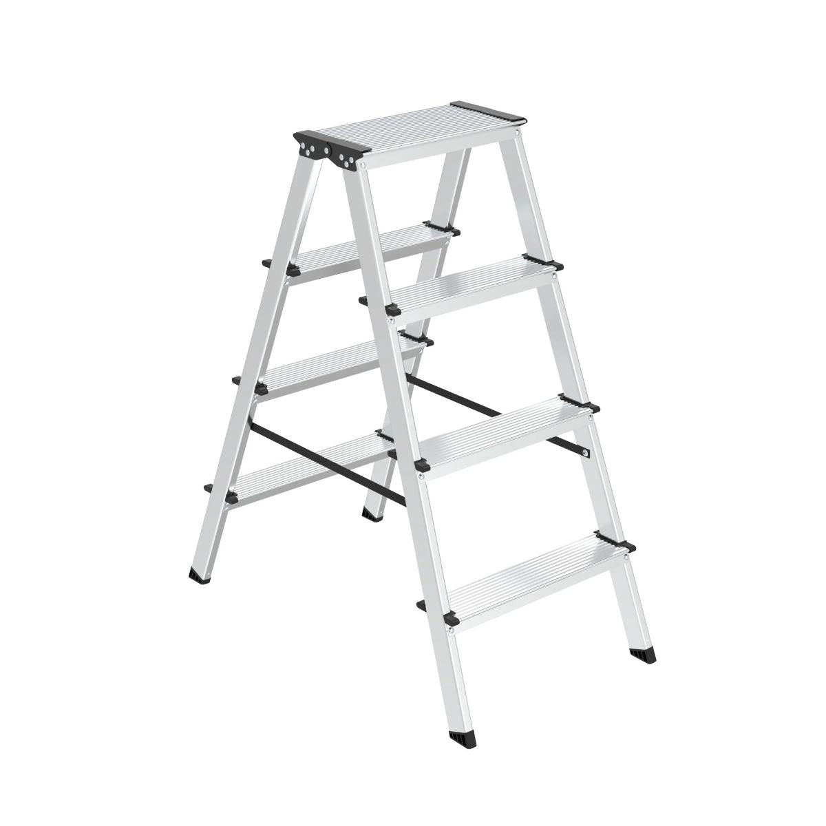 Avec ses quatre marches de chaque côté, vous resterez toujours stable et en sécurité. L'escabeau a une capacité de charge maximale de 150 kg, ce qui le rend fiable pour tous types de tâches.