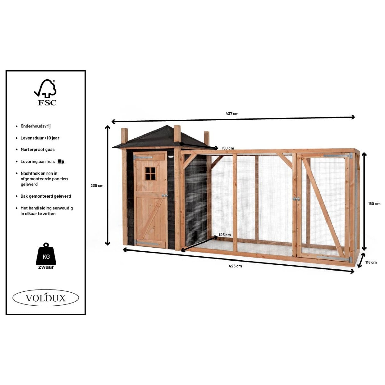 Ce refuge pour animaux convient aussi bien aux poules qu'aux lapins. Le refuge pour animaux de la marque Voldux est en bois imprégné. Cela rend le clapier sans entretien et adapté au placement à l’extérieur. De plus, le clapier a une belle apparence, ce qui rendra votre jardin encore plus beau.