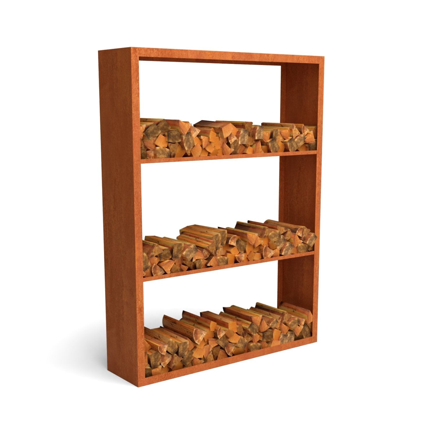 Ben je op zoek naar een cortenstalen houtopslag 150x38,5x200cm met 3 vakken met optimale waterafvoer om houtrot te voorkomen? Bestel dan direct deze houtopslag en geniet van een opgeruimde en stijlvolle tuin!