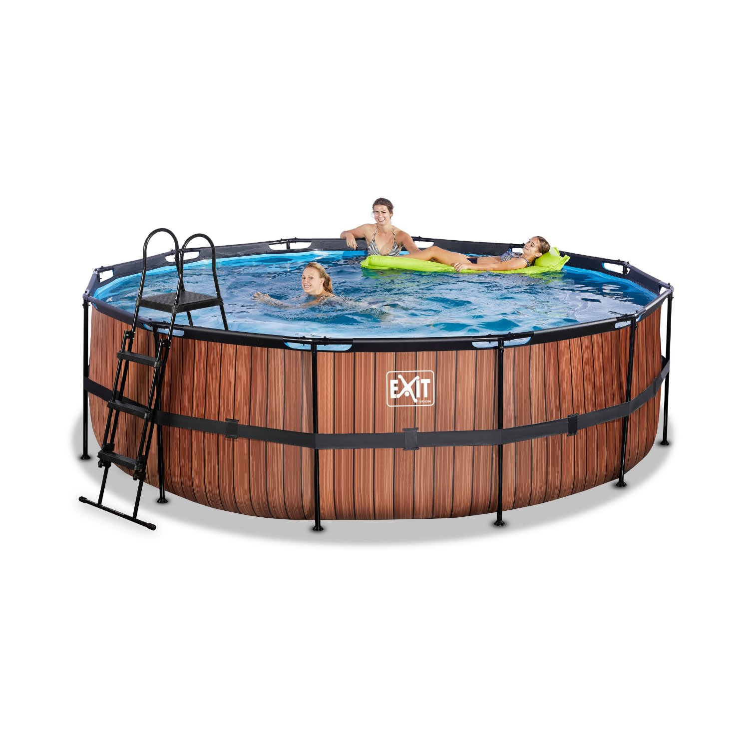 EXIT Wood zwembad ø450x122cm met zandfilterpomp - bruin