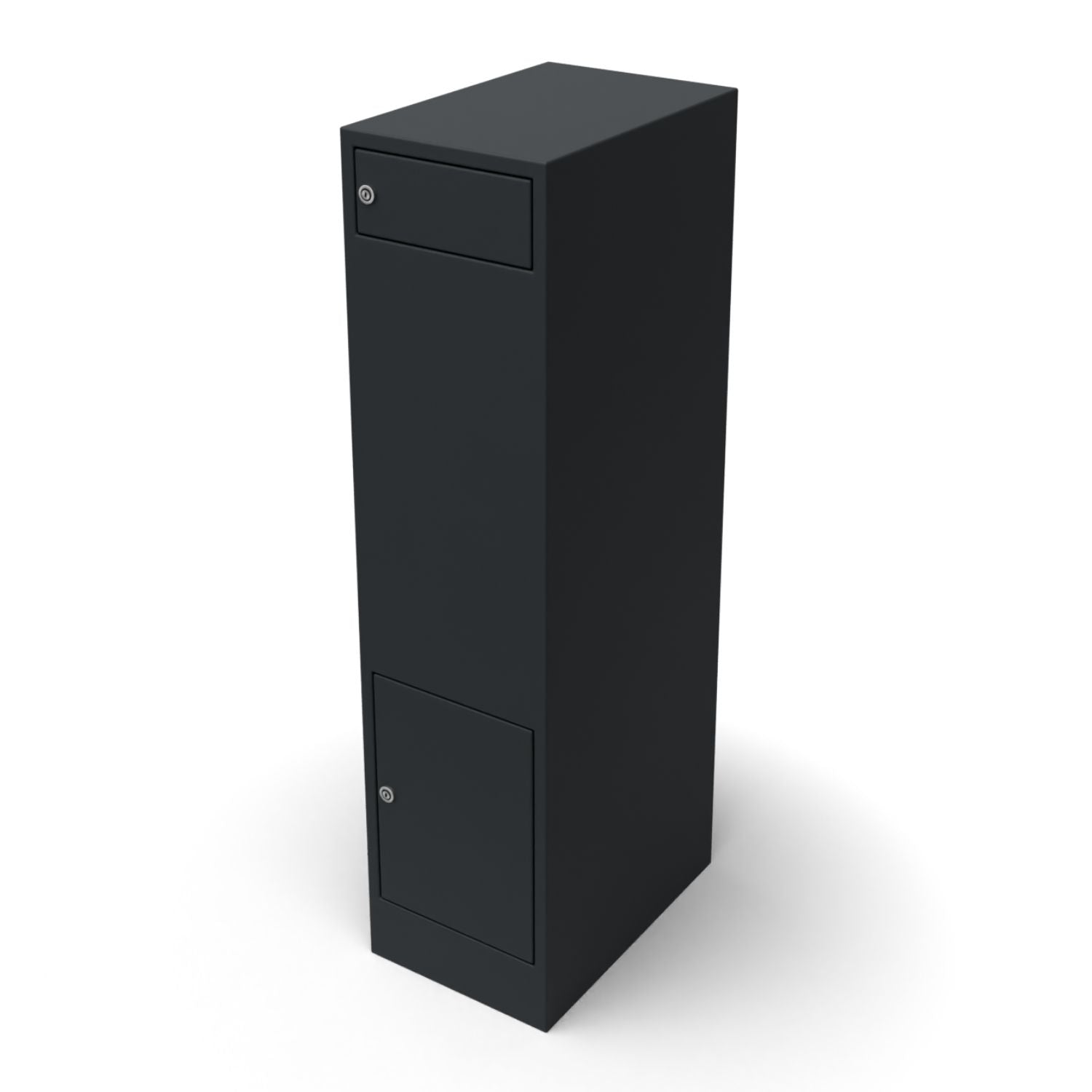 De twee meegeleverde sleutels zorgen voor directe toegang en transparante controle over het compartiment. De robuuste constructie met een materiaaldikte van 2 mm staal levert een lange levensduur op, ook bij intensief gebruik en variabele weersomstandigheden.