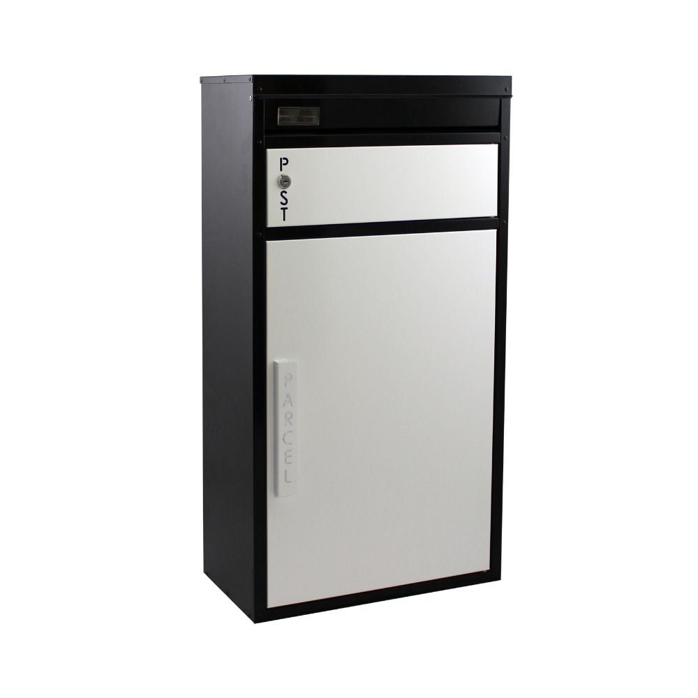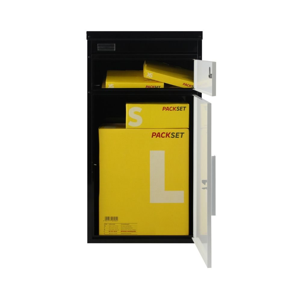 Safepost pakketbrievenbus 65 Tiamat met plat dak zwart/wit RAL 9005/9010