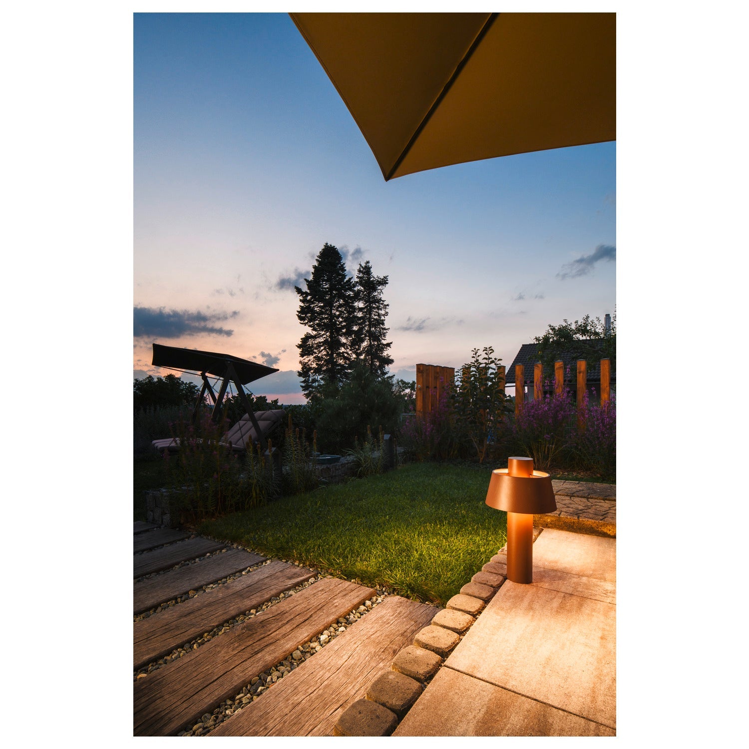 Het cilindrisch-conische ontwerp van PHOTONI is verkrijgbaar in klassieke zwarte uitvoering of een opvallende roestlook. De zwevende kap zorgt voor veelzijdige lichtmogelijkheden: afhankelijk van de uitvoering straalt het licht naar beneden, naar boven of parallel. Deze flexibiliteit maakt PHOTONI ideaal om een warme, huiselijke sfeer te creëren in de tuin of op het terras, perfect voor ontspanning en rust.
