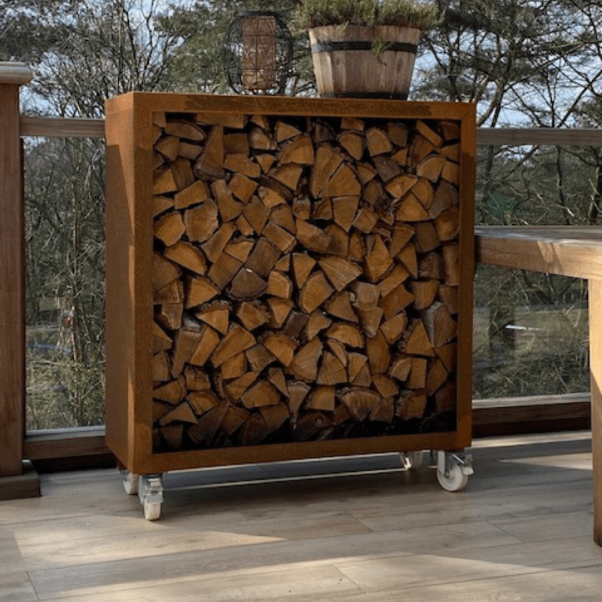 Wielen onder houtopslag of plantenbak Geroba
