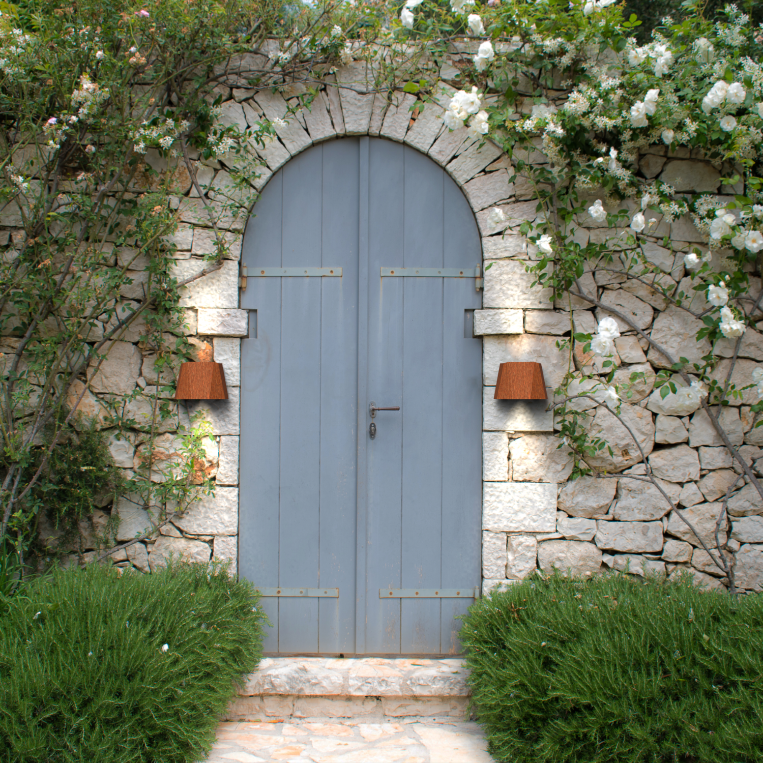 Facet lamba sadece işlevsel olmakla kalmaz, aynı zamanda her dış mekana şık bir görünüm katar. Corten çeliğinin doğal pas rengi zamanla gelişir ve lambanın benzersiz estetiğine katkıda bulunur. Bu, lambayı hem modern hem de klasik dış mekanlar için mükemmel bir tamamlayıcı yapar. Aydınlatma hem yukarı hem de aşağı doğru yayılır, bu da cephelerin ve duvarların atmosferik ve eşit bir şekilde aydınlatılmasını sağlar.