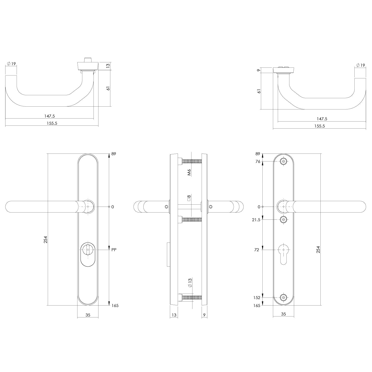 Intersteel Güvenlik aksamı SKG*** çekirdek çekmeye karşı koruma profilli silindir delikli 72 mm dar kalkanlı arka kapı aksamı fırçalanmış paslanmaz çelik