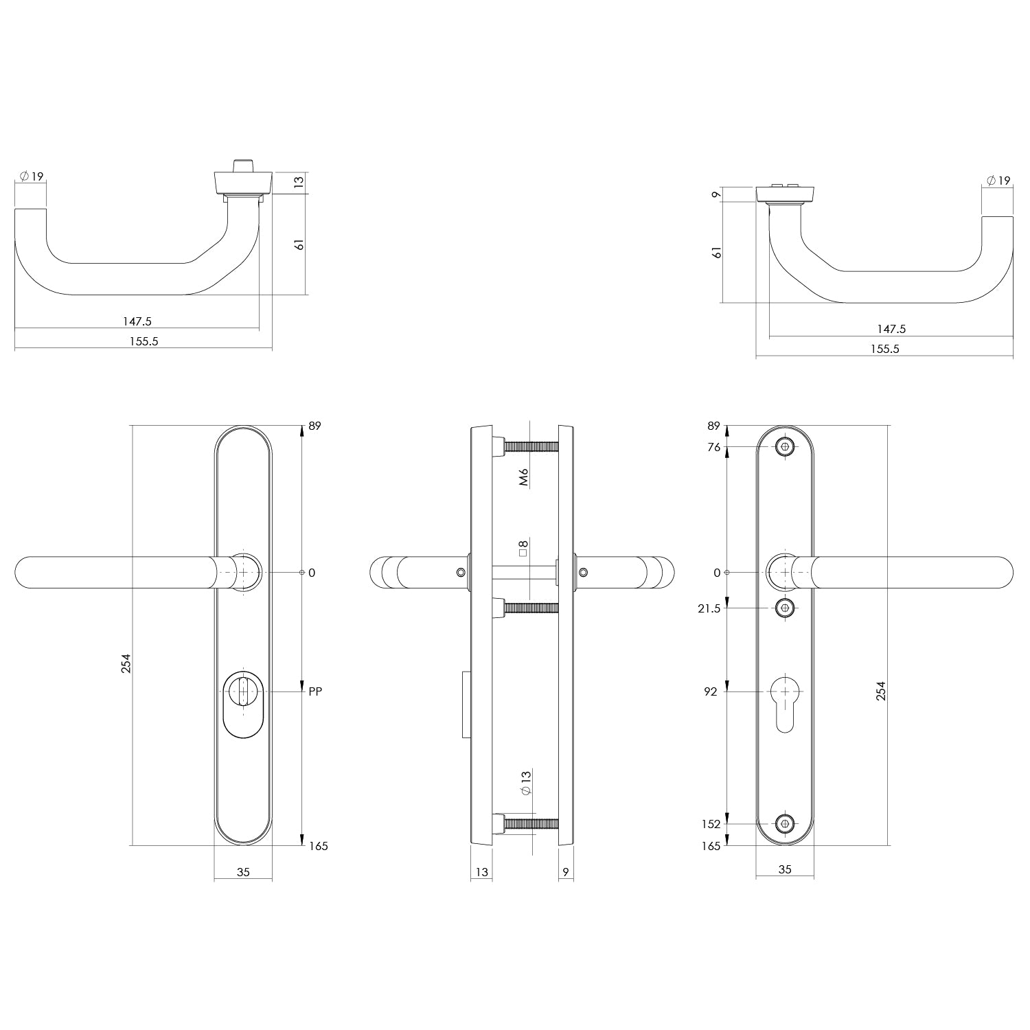 Intersteel Güvenlik aksamı SKG*** çekirdek çekmeye karşı koruma profilli silindir delikli 92 mm yaylı dar oval arka kapı aksamı fırçalanmış paslanmaz çelik