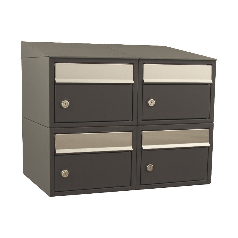 2 genişlikte, 2 yükseklikte çatılı Antrasit 49x59x38 cm (YxGxD) Mektup Kutusu ünitesi Brickset, galvanizli çelik, antrasit gri ve siyah dahil olmak üzere çeşitli versiyonlarda mevcuttur. Her posta kutusu, kolay kullanım ve uzun süreli dayanıklılık sağlayan yaylı paslanmaz çelik ek kapakla donatılmıştır. İsteğe bağlı olarak bağımsız bir yerleşim için bir tripod seçin ve hava koşullarına karşı ekstra koruma için bir çatı ekleyin.