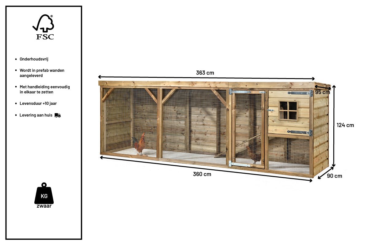 - Bakım gerektirmeyen malzemelerden yapılmış ve gece kafesinin alt kısmı beton kontrplakla donatılmıştır