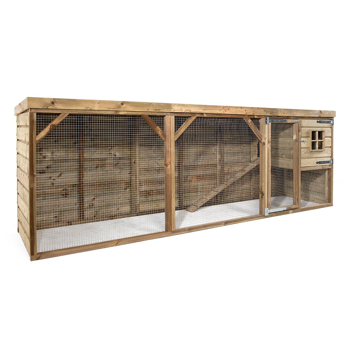 Ayrıca muhafazanın tamamı düz bir çatıya sahip olduğundan, tüm yıl boyunca bunun tadını çıkarabilirler ve siz de kuru tavşan koşusundan yararlanabilirsiniz, bu da onu temiz tutmak için faydalıdır.