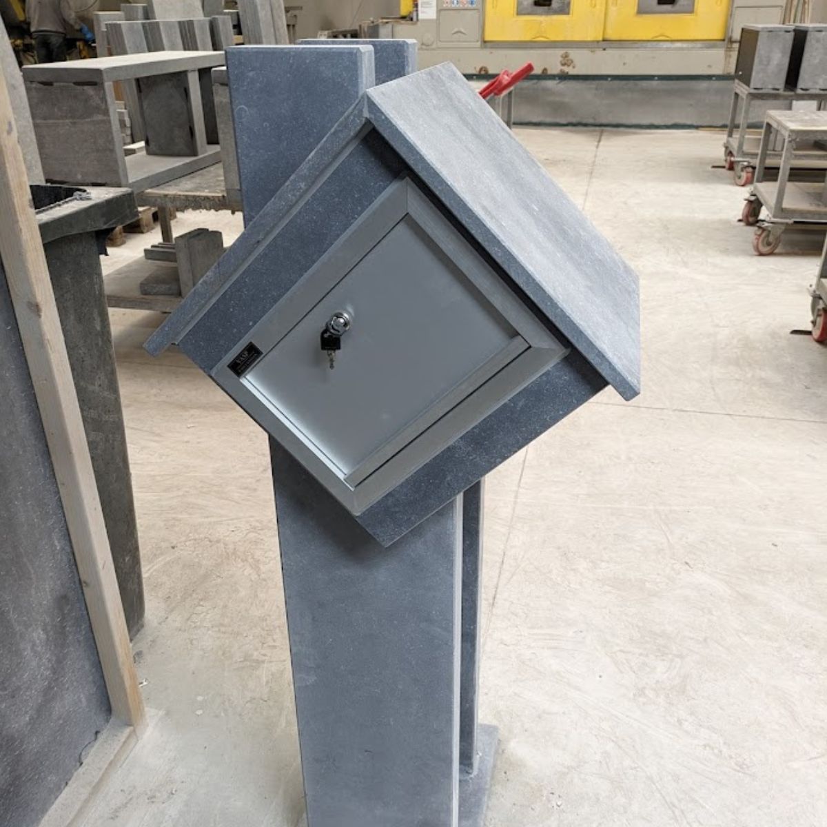 Belçika mavi taşının kullanılması sayesinde Home Sweet Home Mektup Kutusu tamamen hava koşullarına dayanıklıdır ve hava koşullarına dayanıklıdır. 50 x 115 x 40 cm boyutları ve 90 kg ağırlığıyla bu posta kutusu sağlamdır ve rengi solmadan veya yıpranmadan yıllar boyu en iyi durumda kalacaktır.