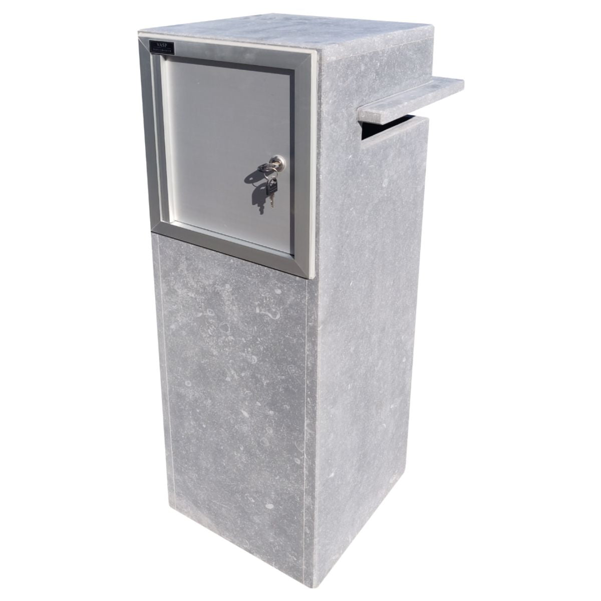 VASP Oliva Mektup Kutusu tüm hava koşullarına dayanıklıdır, bu nedenle yıllarca dış mekan kullanımından sonra bile gri rengini ve görünümünü korur. Belçika mavi taşının kullanılması, posta kutusunun rengi solmadan veya yıpranmadan çok uzun süre dayanacağını garanti eder.