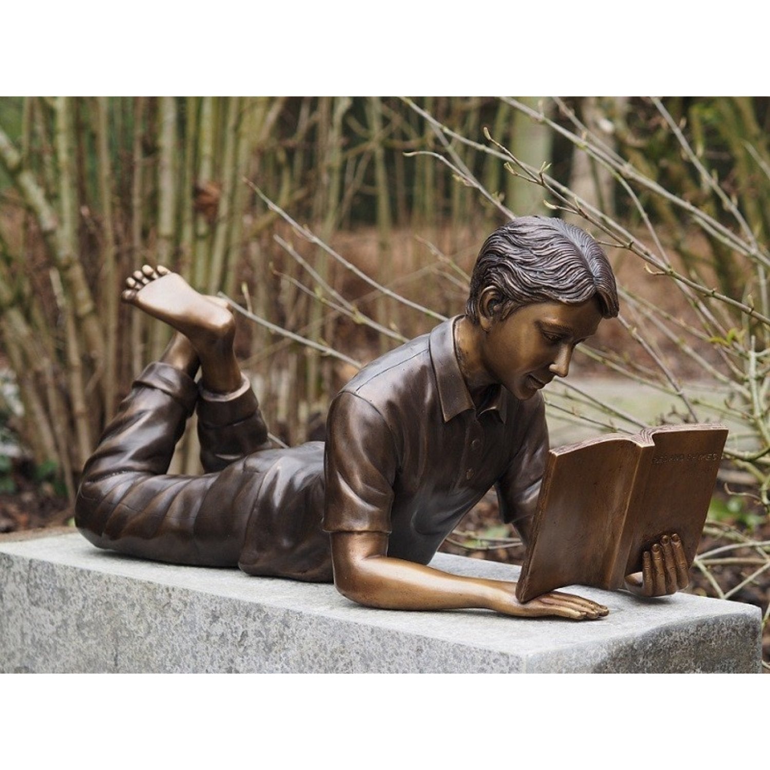 Bronz Heykel Yatan Okuyan Çocuk 35x25x75cm (YxGxU) heykeli, bronzun doğal sarı veya bakır rengini koyu kahverengi, yeşil veya siyah gibi zengin tonlara dönüştüren dikkatli bir kimyasal işlemle elde edilen canlı patinasıyla öne çıkıyor. Bu, her görüntüye benzersiz bir görünüm kazandırarak her ortamda dikkat çekmesini sağlar. İster iç mekana ister dış mekana yerleştirilmiş olsun, çarpıcı bir sanat eseri olmaya devam ediyor.